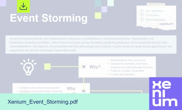 Event-Storming ist eine kollaborative Methode aus dem Domain-Driven Design, mit der wir Geschäftsprozesse und IT-Systeme gemeinsam mit allen relevanten Rollen analysieren. Im Mittelpunkt stehen die entscheidenden Ereignisse („Events“), die den Ablauf eines Prozesses prägen. Diese werden gesammelt, sichtbar gemacht und Schritt für Schritt zu einem ganzheitlichen Bild angeordnet.